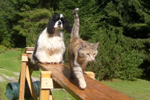 S Máťou často soupeříme o první místo ve smečce, občas do mě zasekne svoje drápky a největší legrace je, když nejsem pročesaný a on se zasekne o chlupy, nemůže vyndat packy a já ho za sebou táhnu, to už máme oba pocit, že paničku z nás klepne.